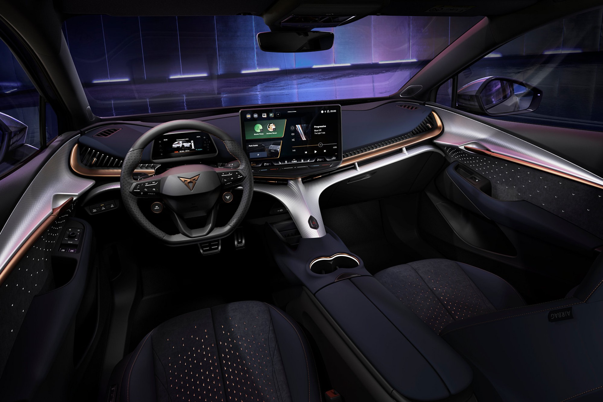 De Tavascan is een lust voor het oog, met zijn scherpe lijnen, coupé-achtige daklijn en opvallende lichtsignatuur. Het is duidelijk dat Cupra geen genoegen neemt met een doorsnee SUV-design. Het interieur is al even stijlvol, met sportstoelen, sfeervolle ambient lighting en hoogwaardige materialen die een gevoel van luxe en sportiviteit uitstralen.