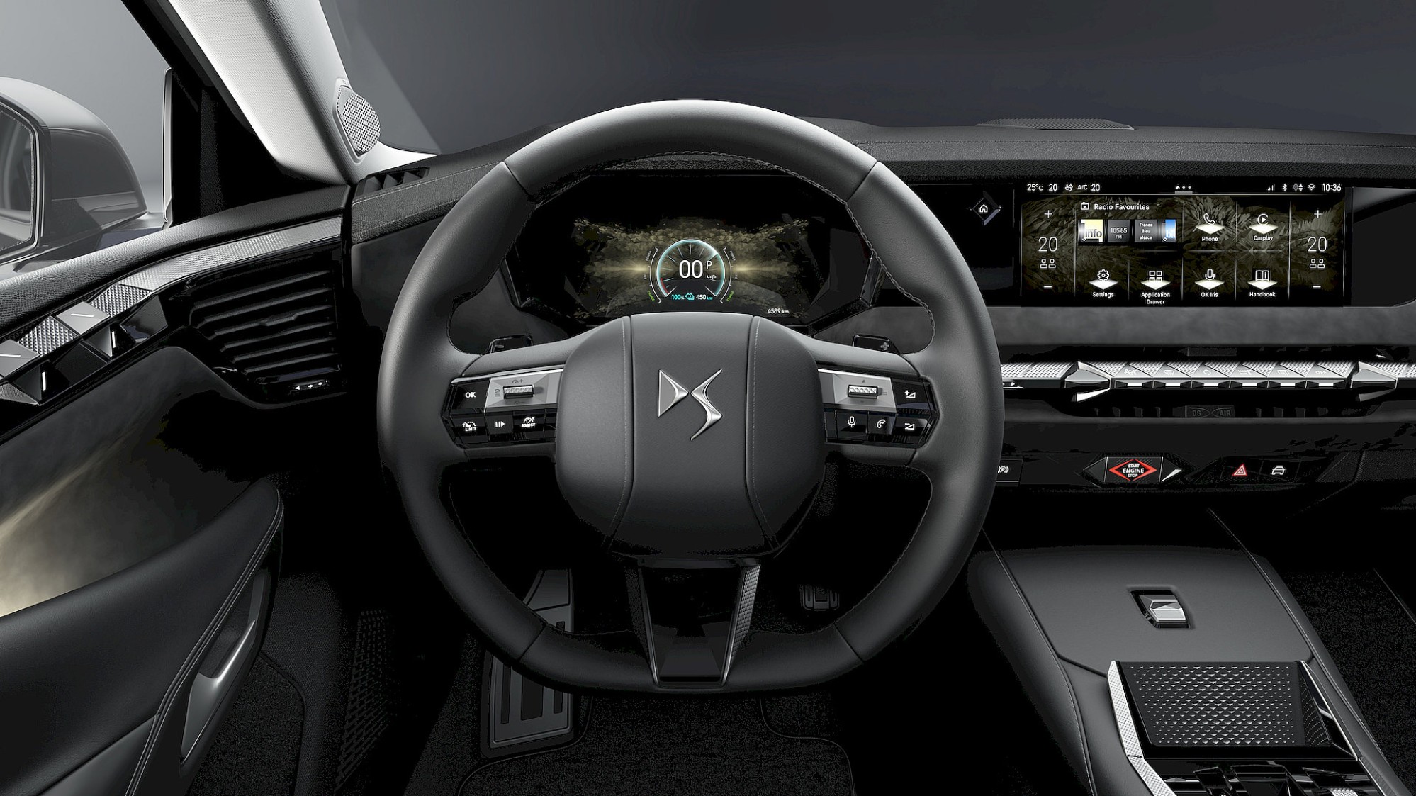 In het interieur valt de rust op. Het dashboard is fraai afgevlakt waarbij de ventilatieopeningen nagenoeg onzichtbaar zijn geïntegreerd. Het instrumentarium is verbreed naar 10,25 inch. Optioneel projecteert een DS Extended Head Up Display informatie als het ware vier meter vóór de voorruit – subtiele augmented reality.