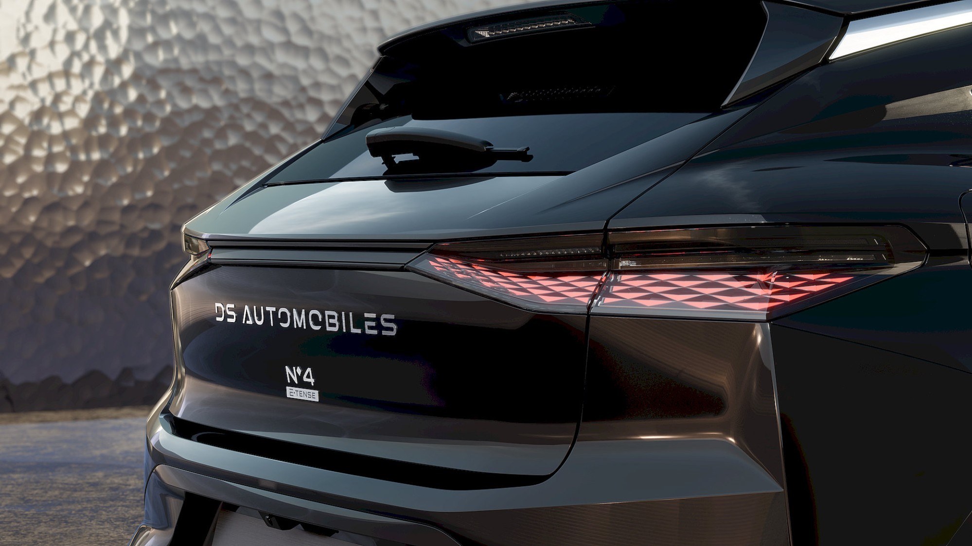 De proporties blijven nagenoeg gelijk: 4,40 meter lang, 1,87 meter breed maar de voorzijde van de N°4 is platter, breder en uitgesprokener. De doorlopende lichtsignatuur, uiteraard geïnspireerd op de DS E-Tense conceptcar, loopt horizontaal door naar het verlichte DS-logo. De verticale dagrijverlichting behoudt zijn V-vorm, maar is slanker en ‘technologischer’ uitgevoerd.