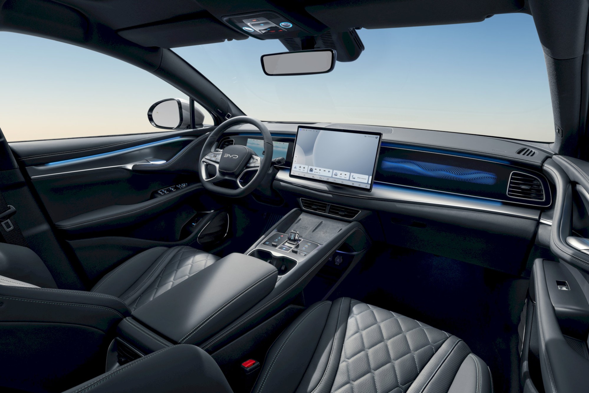Natuurlijk is de binnenruimte ook belangrijk. Daar hoef je je geen zorgen over te maken in de Sealion 7. Met een wielbasis die zelfs iets langer is dan die van de BYD Seal en dankzij het slimme Cell-to-Body concept, biedt de Sealion 7 volop ruimte aan vijf personen. Zelfs met die aflopende daklijn is er volgens BYD achterin meer dan genoeg hoofdruimte. Ook het interieur is helemaal van deze tijd, met vloeiende lijnen die het Ocean-design van BYD doortrekken. De afwerking is van hoge kwaliteit, met mooie materialen en zelfs vegan lederen bekleding als optie.