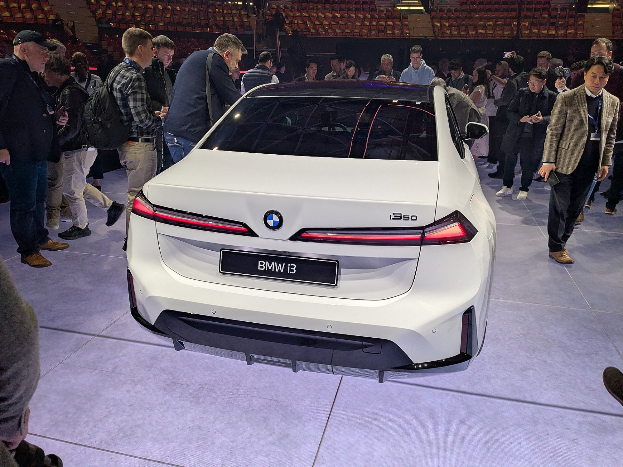 Zoals we al zeiden: doordat we de laatste tijd heel wat studiemodellen en conceptcars hebben gezien die ons hebben voorbereid op de komst van de nieuwe i3, laat zijn design ons in eerste instantie niet uit onze stoel opveren van opperste euforie. Alhoewel we beslist de laatsten zullen zijn, die beweren dat de auto een muurbloempje is. Naarmate we onze ogen wat langer over het plaatwerk laten glijden, ontstaat vanzelf bewondering. Hoewel het accupakket (vanzelfsprekend) in de vloer van de auto is geïntegreerd, is het klassieke lage silhouet van oudere 3-Serie generaties behouden gebleven. Over de 3-Serie gesproken: voorafgaand aan de onthulling passeren ook alle acht eerdere generaties van deze modelreeks nog even de revue. Want in feite is de i3 natuurlijk gewoon de volledig elektrische variant van de negende Dreier, en niet zozeer de vervanger van de nogal revolutionaire EV die eerder de code ‘i3’ mocht dragen. De mooie vloeiende daklijn gaat haast naadloos over in het korte kofferdeksel. Aan de achterkant zien we lichtunits die in het midden van de achterklep elkaar bijna raken.