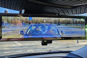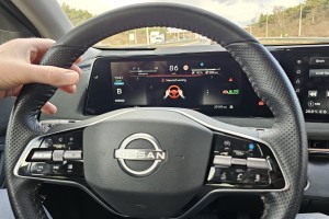 Vaak moet je bij adaptive cruise control even aan het stuur draaien, maar niet bij de Ariya. Dan hoef je slechts in het stuur te knijpen om te laten weten dat je nog op let. Veel veiliger!
