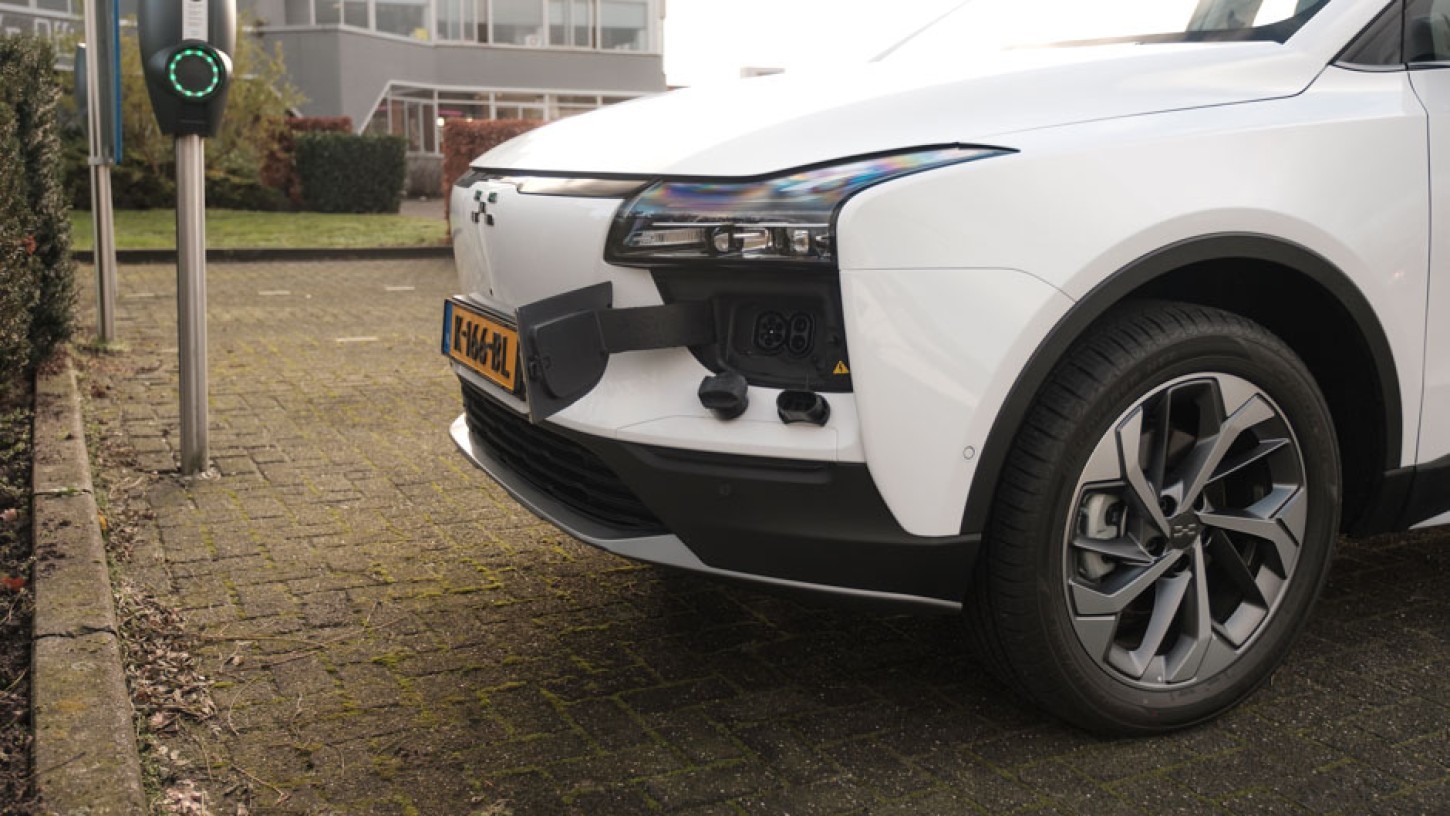 In 2022 kondigde Aiways een belangrijke wijziging aan, dat alle Aiways U5-en voortaan geleverd zouden worden met een 3-fasen omvormer die 11 kW aan kan. Dat maakt de U5 een stuk interessanter dan de 3,7 kW op 1-fase bij praktisch alle huishoudens en openbare laadpalen. De laadaansluiting zit wel op een plek die we niet eerder gezien hebben, namelijk links onder de koplamp en dan ook nog eens gedraaid. Dat geldt dus ook voor een snellaadkabel die een dikkere en minder flexibele laadkabel heeft.