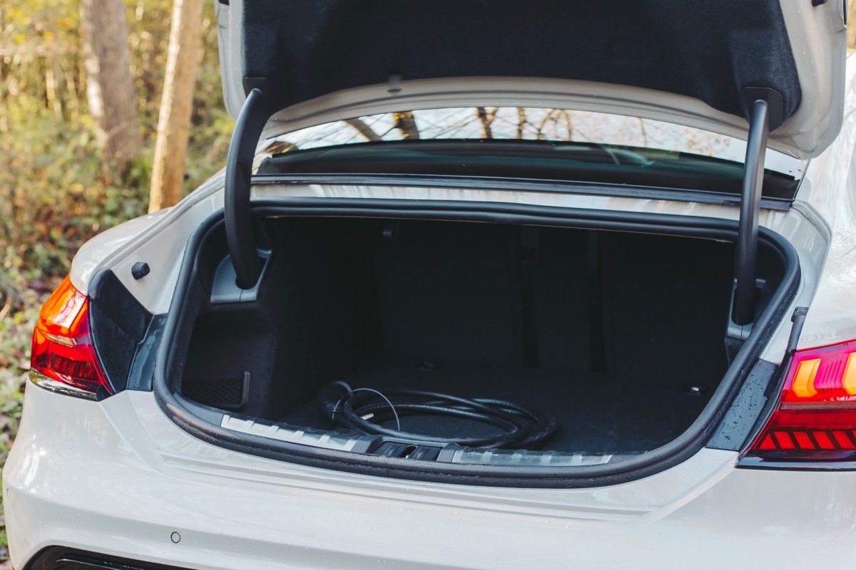 - Hoewel de achterbank voldoende ruimte biedt voor twee volwassenen, is de hoofdruimte beperkt door de coupé-achtige daklijn. Langere passagiers kunnen zich hier bekneld voelen.