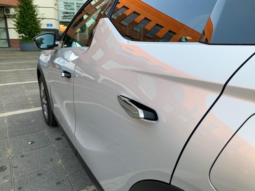 Een uniek designkenmerk is het puntje aan de voorkant van de ramen van de achterportieren. Ziet er heel leuk uit van buitenaf, maar van binnenuit is het irritant. Het vergroot je dode hoek die toch al niet de kleinste is.