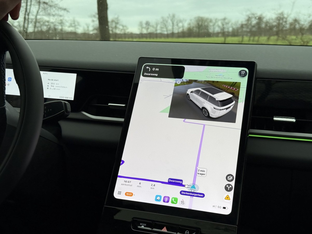 Het interieur zelf is overzichtelijk opgezet. Een groot centraal scherm van 13,2 inch domineert het dashboard, aangevuld met digitale instrumenten. De materialen voelen hoogwaardig aan. Verzorgd en functioneel.