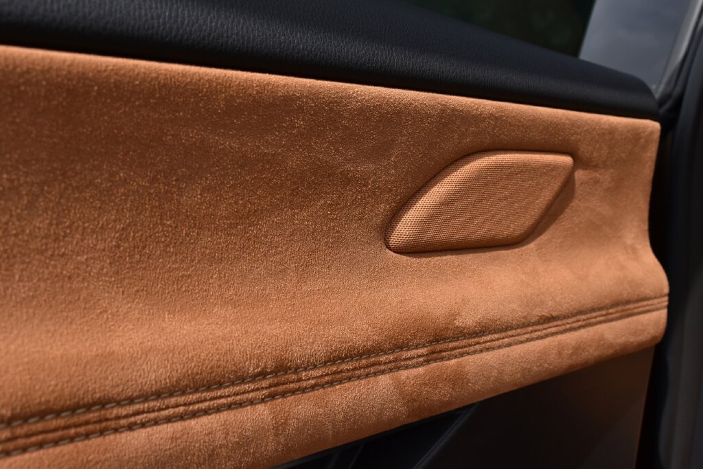 Voor meer sfeer in het interieur moet je gaan voor de duurdere uitvoering met de naam Takumi Plus zoals op deze foto’s. Alleen dan krijg je dit mooie nappaleer met suède afwerking op de stoelen, de deurpanelen en het dashboard. Het ziet er werkelijk prachtig uit. Zelfs de afdekkapjes van de speakers in de deurpanelen zijn met de stof bekleed.