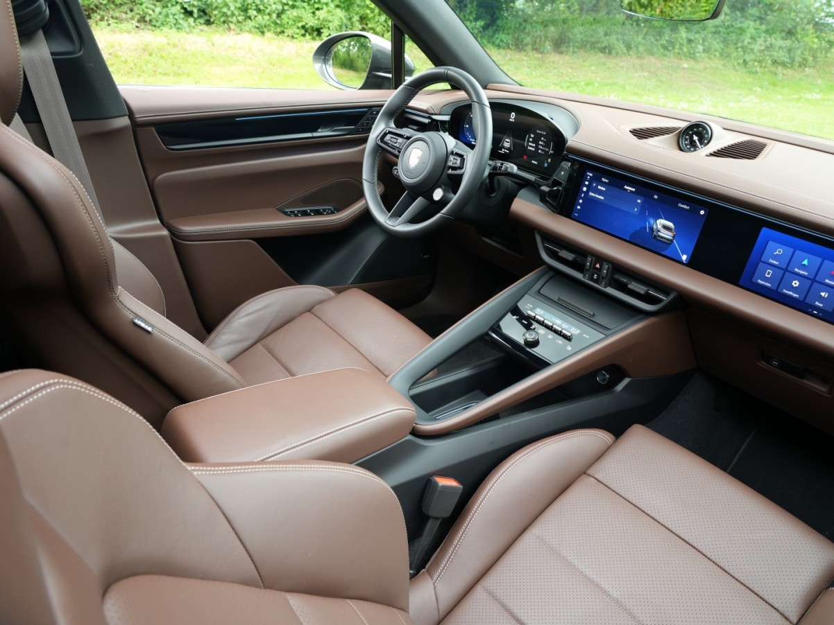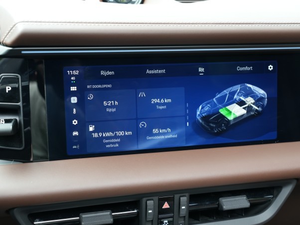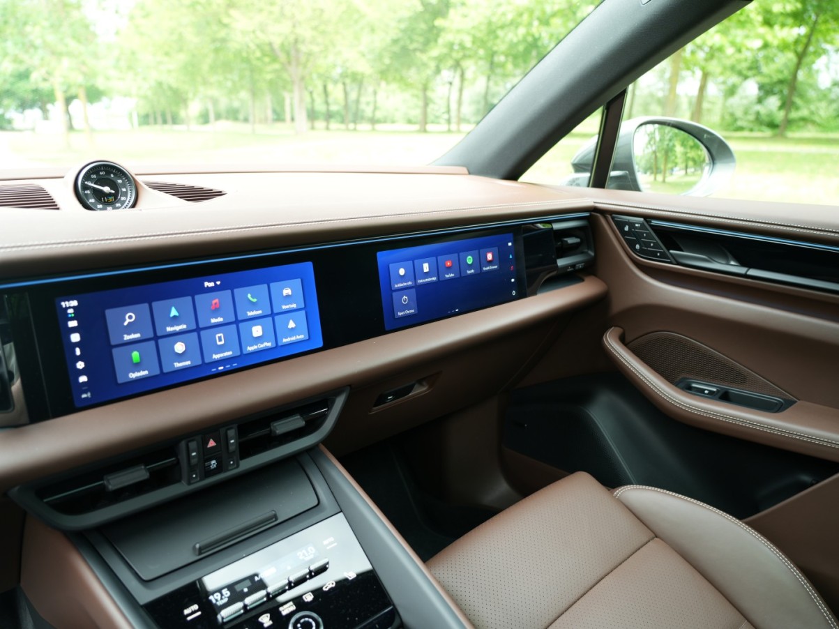‘Geslaagd’ is ook het gevoel dat je bekruipt wanneer je de prachtige materialen en afwerking laat inwerken op je zintuigen. Zoals gezegd: Porsche biedt je omvangrijke keuzemogelijkheden, wat dat betreft. Zo is het dashboard in onze testauto geheel bekleed met leer, en is er naast het centrale display voor de bediening ook voor de bijrijder een scherm voor het nodige vertier. Het instrumentarium is met zijn licht gebogen display en heldere weergave ook weer typisch voor een Porsche. Wat dat betreft heeft het merk samen met Audi er goed aan gedaan om het design van beide auto’s geheel in eigen beheer te doen, en geen zichtbare onderdelen met elkaar uit te wisselen. Zoiets zouden Porsche-klanten waarschijnlijk nooit accepteren. Terecht niet!