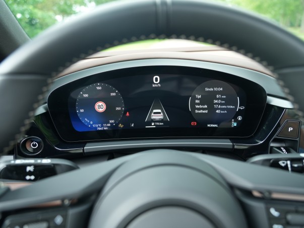 Een 175 kilometer lange rit over een gevarieerde route – met druk stadsverkeer, provinciale wegen en de snelweg bij 100 en 130 km/u – geeft een indicatie van het te verwachten praktijkverbruik en de reële actieradius. Voor de Macan Electric in basistrim geeft Porsche zelfs 18,3 kWh/100 km (WLTP) op, bij een maximale actieradius van 641 kilometer. Ondanks zijn gewicht, formaat en sportieve genen, presteert de Macan Electric in onze handen zelfs beter dan het officiële WLTP-verbruik. Wanneer we na 175 kilometer weer thuis voor de deur staan, geeft de boordcomputer een verbruik weer van 17,6 kWh/100 km.