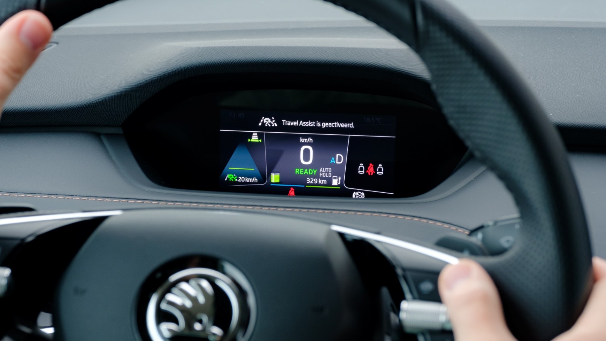 In het interieur blijft het schermenfeest beperkt tot twee stuks, een kleintje achter het stuur en een 13 inch op het midden van het dashboard. Gelukkig worden deze schermen ondersteund door enkele fysieke knoppen voor snelle commando’s. Het binnenste oogt verder heerlijk opgeruimd met ook nog eens erg veel opbergruimte in bijvoorbeeld de deuren en onder de middenconsole, maar ook in het infotainmentsysteem.