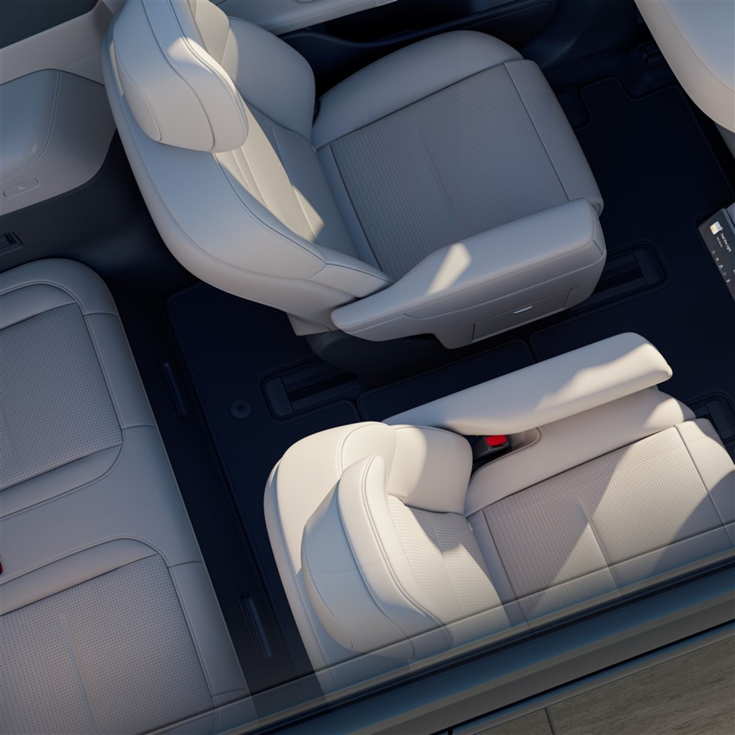 Je geniet het meeste van Nio’s luxe als je kiest voor de Executive uitvoering met een warm- en koelkast tussen de stoelen. Jammer genoeg kunnen de rugleuning dan niet ver genoeg naar achteren. Kies je voor de people-mover editie, dan krijg je een looppad tussen de middelste stoelen. Doordat de losse stoelen goede leuningen krijgen, blijft het businessclass gevoel welbehouden.