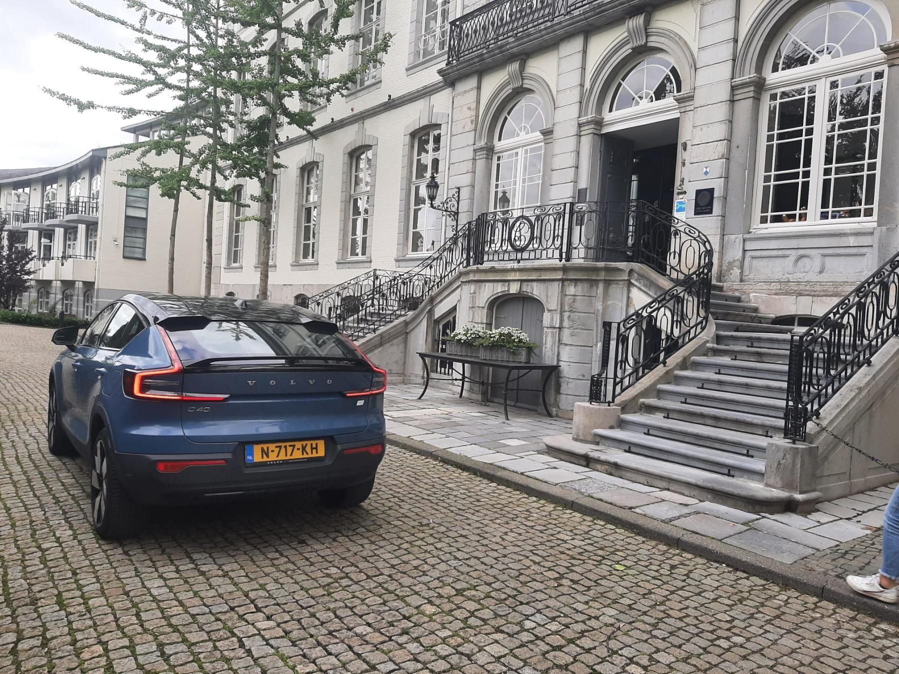 De auto waarin ik mag rijden is blauw van kleur en die kleur staat me wel aan. De auto heeft een lage achterruit in tegenstelling tot de meeste Volvo’s die je op de weg ziet rijden. De Volvo is een C40 en de meeste verkochte Volvo’s zijn XC40. De Volvo C40 heeft een hoge instap (fijn) en navigatie (fijn), zoals gebruikelijk nu voor de meeste auto’s. En natuurlijk automatische transmissie voor hele of halve hybride auto’s. De rit begint vanuit de Randstad naar midden Limburg, een rit van ong. 200 km.